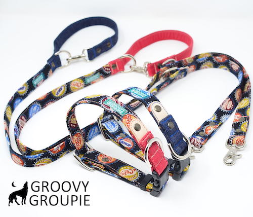 《小型犬用》首輪とリードセット ボトルキャップ柄とデニム【ポスト投函選択で送料無料】