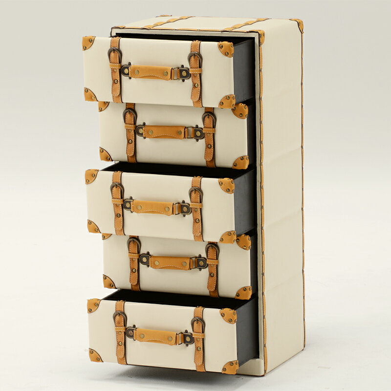 送料無料 トランク型チェスト レザー 北欧 レトロ テキサス 棚 かっこいい アイボリー 合皮 西海岸 収納家具 アメリカン【MCH-6005IV】